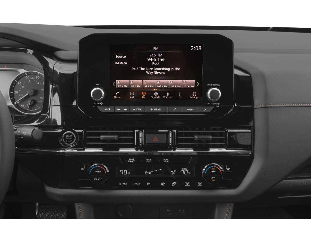 - Radio: AM/FM Audio System w/NissanConnect -inc: 6 speakers, Radio Data System (RDS), Apple CarPlay and Android Auto, 8" color display w/multi-touch control, SiriusXM Satellite Radio w/advanced audio features, 2 illuminated front USB connection ports (1 type A, 1 type C) for iPod interface and other compatible devices, Bluetooth® hands-free phone system and streaming audio, Speed-Sensitive Volume control (SSV), hands-free text messaging assistant and Siri Eyes-Free/Google Assistant voice recognition